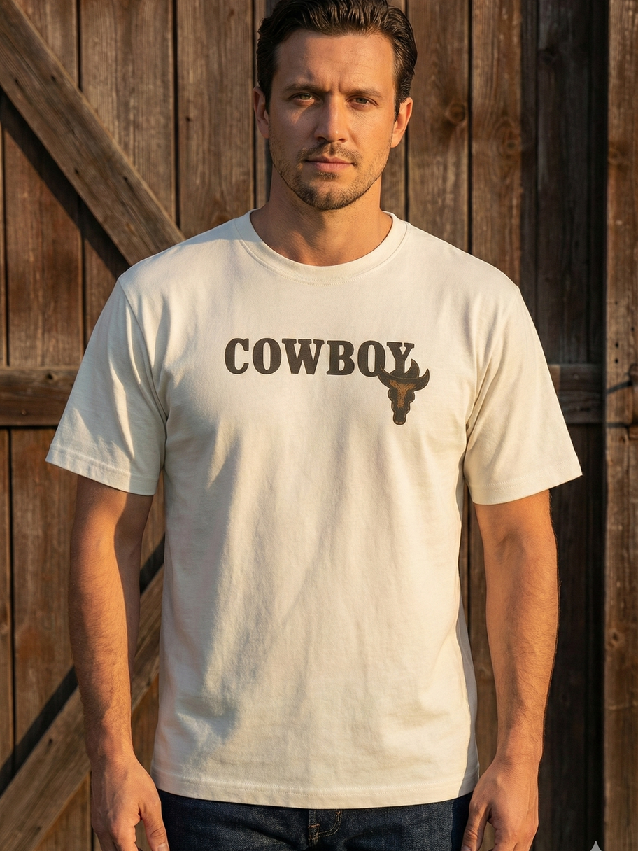 Cowboy Skull Graphic Tee – White | Starestitch Western Series
